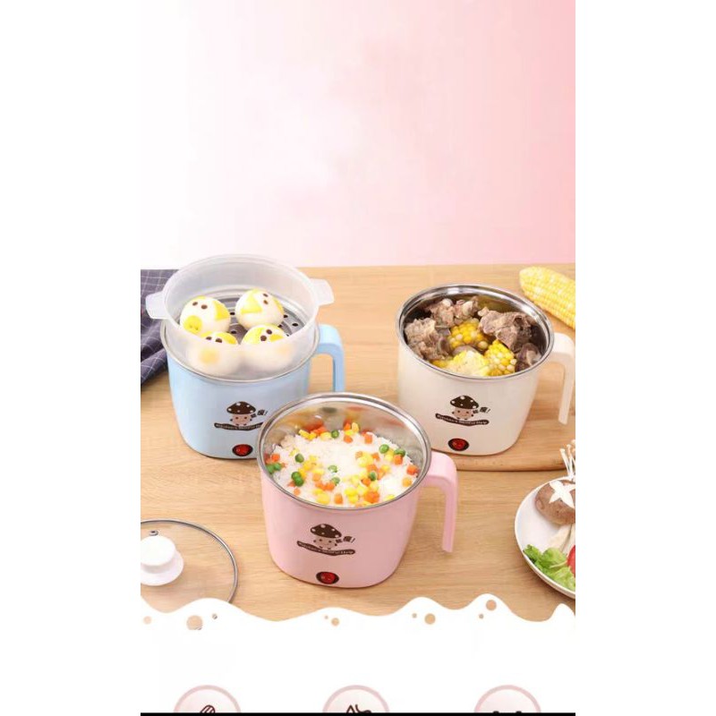 NỒI LẨU MINI 2 TẦNG ĐA NĂNG CHIÊN XÀO LẨU - Hàng hot đã sẵn rồi , size 18cm siêu to luôn - Ca nấu mì, Nồi lẩu điện mini - Có hai lớp,lớp trong là inox,lớp ngoài là nhựa chống nóng. - Hay còn gọi là Ca lẩu nhỏ đun điện dùng cá nhân 1-2 người,dùng để nấu canh,đun nước sôi,nấu mỳ,hấp đồ ăn. v.v.v - Đường kính 18cm - Vung kính - Có công tắc tắt bật. - Ca điện mầu . thích hợp cho cá nhân,ít người,nấu và hấp đồ ăn nhanh hoặc cho trẻ con và người già. THÔNG TIN SẢN PHẨM : - Tên sản phẩm : nồi lẩu mini - Kích thước : 18 cm - Nguồn điện : 220V - Công suất : 770W - Màu sắc : giao ngẫu nhiên - Xuất xứ : Trung Quốc - Đóng gói : hộp