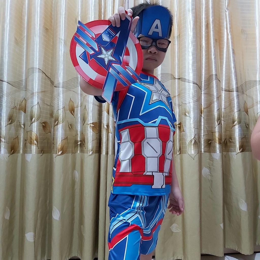 Giới thiệu [Hàng mới về] Bộ quần áo thời trang trẻ em Đội trưởng Mỹ kèm tặng khiên và mặt nạ - Hàng SamKids