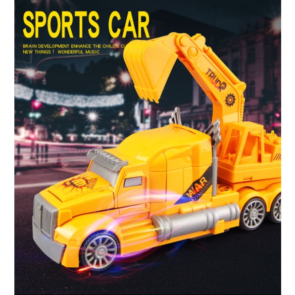 [Hàng mới về] Đồ chơi xe cẩu biến hình nhạc đèn xoay 360°