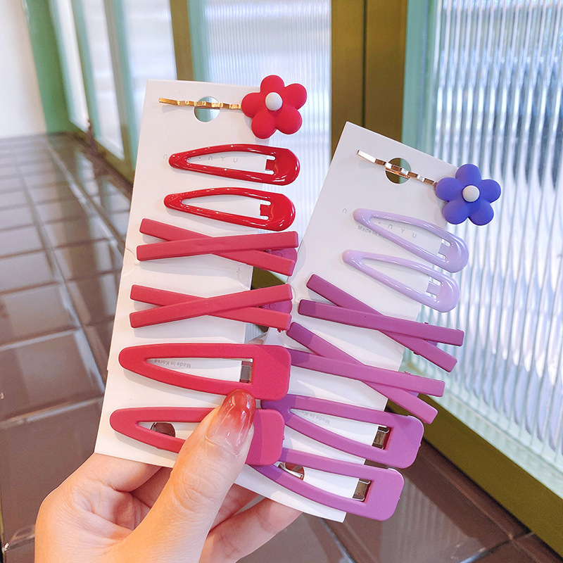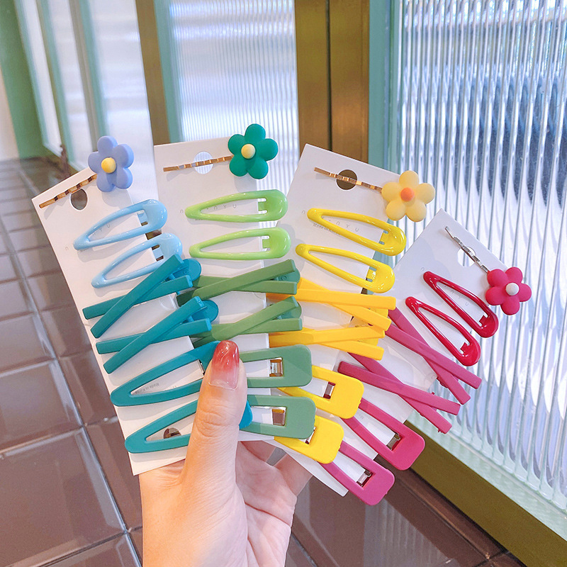Tên sản phẩm: thẻ kẹp tóc màu Chất liệu: sắt + nhựa Phong cách: hoạt hình Kích thước: khoảng 6 * 2.5 CM Màu sắc: đỏ, hồng, tím, vàng, xanh dương-xanh lá, xanh lá Đóng gói: đóng gói trong 1 thẻ (7 kẹp/ thẻ) Trọng lượng: khoảng 17 gram/ set