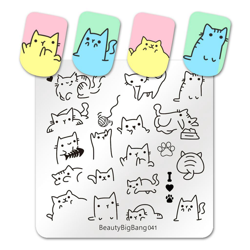 Sắc Đẹp > Dụng cụ & Phụ kiện Làm đẹp > Chăm sóc móng > [Hàng mới về] Khuôn in họa tiết Beautybigbang trang trí móng tay bằng thép không gỉ hình mèo con dễ thương 6x6cm