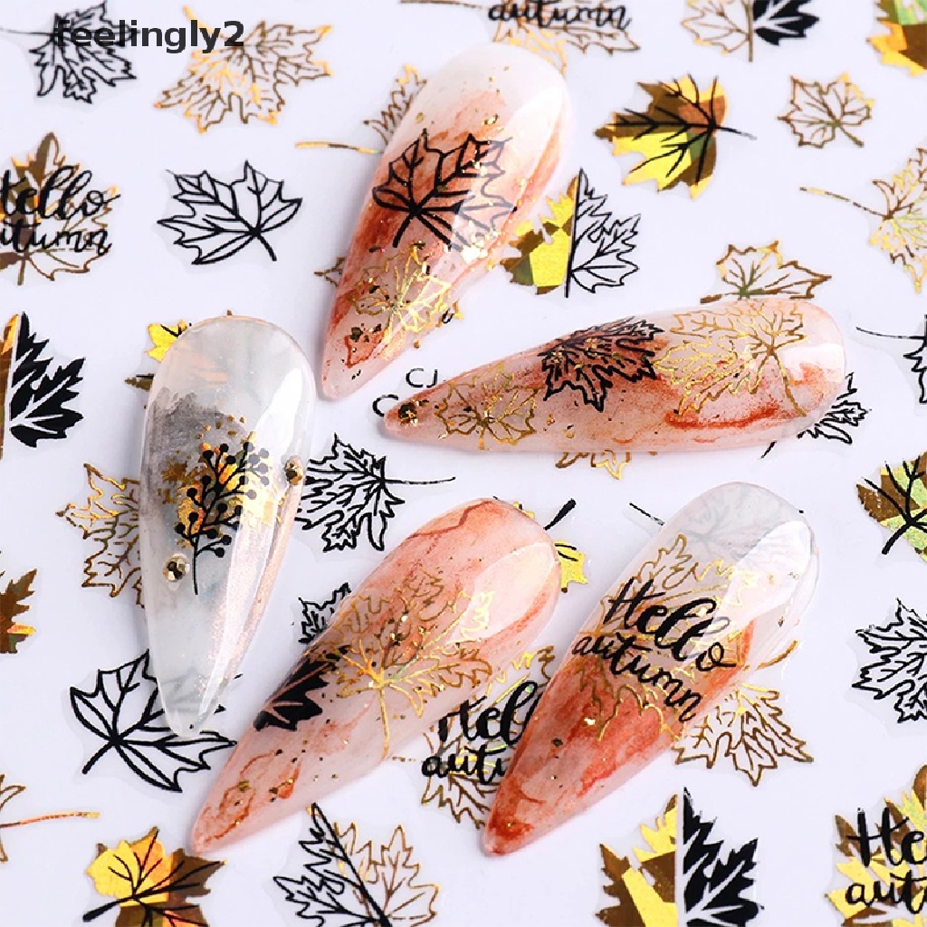 Giới thiệu [Hàng mới về] Miếng dán trang trí móng tay màu vàng đồng laser hình cây cỏ 3D