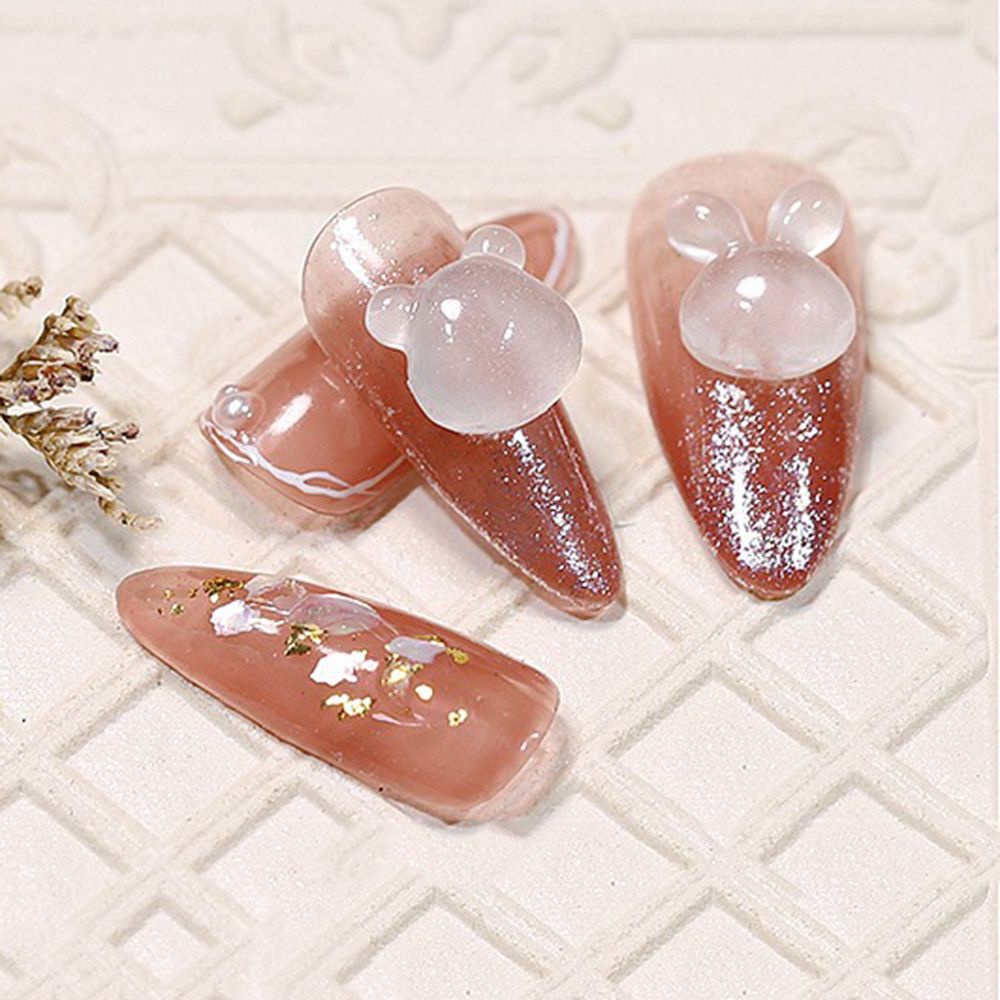 Giới thiệu [Hàng mới về] Phụ kiện trang trí móng tay dạng thạch hình đầu thỏ/gấu 3D màu kẹo trong suốt