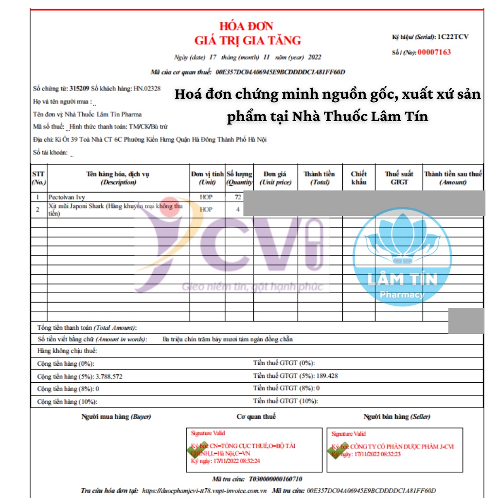 Lamtinpharmacy Cam kết: 🎯 Luôn tư vấn tận tâm, nhiệt tình với tâm của người dược sĩ. 🎯 Đảm bảo tất cả sản phẩm luôn chính hãng 100%, nguồn gốc xuất xứ rõ ràng, nói không với hàng giả, hàng nhái, hàng kém chất lượng 🎯 Sản phẩm luôn có hạn sử dụng dài 💲Giá cả luôn hợp lý, cạnh tranh, tiết kiệm cho Quý khách hàng