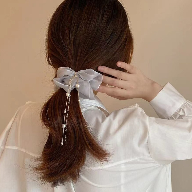 Giới thiệu [Hàng sẵn] Buộc Tóc Scrunchie Size To Vải Lụa Satin Kèm Dây Ngọc Dài HotTrend Cho Nữ