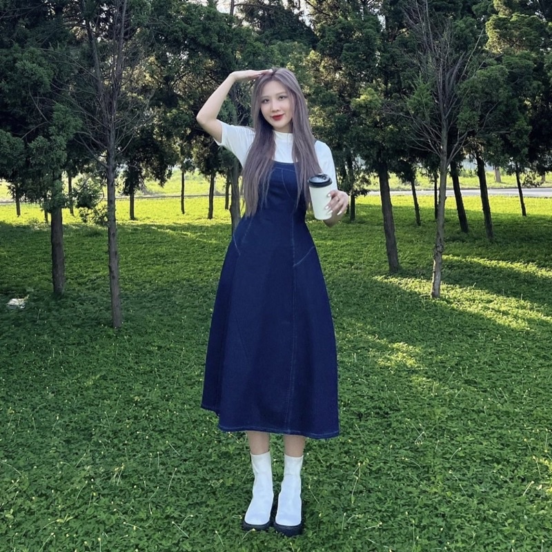 Giới thiệu [HÀNG SẴN] Đầm - Yếm jeans dáng dài CHỈ NỔI phong cách vintage