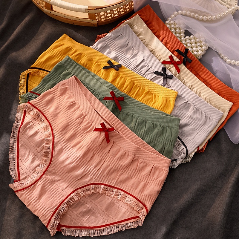 Giới thiệu [Hàng Sẵn Sàng] 2022 Mới!Quần Lót Lưng Vừa Viền Ren Thoáng Khí Kháng Khuẩn Cho Nữ