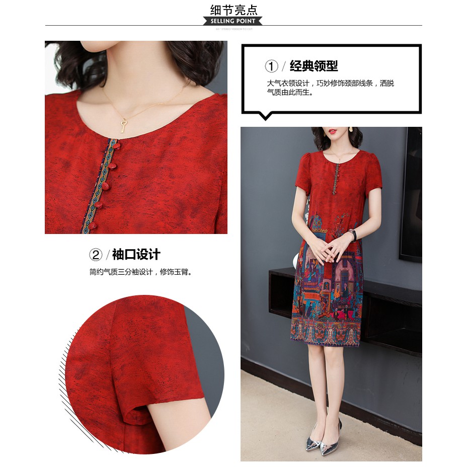 Váy Đầm Lụa Hè Trung Niên Cổ Tròn Giản Dị VH02 - Hàng Quảng Châu Cao Cấp(Ảnh thật cuối hình) Thương hiệu: Millai Xuân Phong cách: đi lại Vải: Satin Đi làm: Hàn Quốc Yếu tố phổ biến / thủ công: in ấn Chiều dài tay áo: tay áo ngắn Kiểu eo: eo cao Kiểu tay áo: thường xuyên Chiều dài váy: váy dài Chất liệu: Lụa Kiểu cổ áo: cổ tròn Phân loại màu: đỏ Kích thước: L<54KG XL(54-60)KG 2XL(61-65)KG 3XL(66-70)KG 4XL(71-75)KG