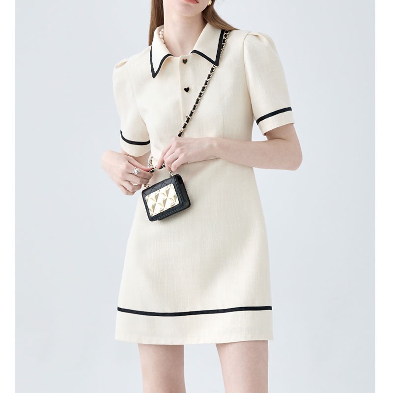 Giới thiệu (HÀNG SẴN) Váy tay phồng tay màu Beige, cổ áo Polo. Váy (đầm) công sở