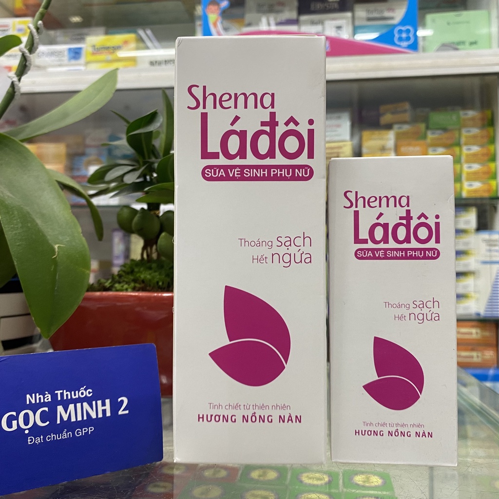 Công dụng: Shema lá đôi tinh chiết từ thiên nhiên làm sạch nhẹ nhàng vùng kín, giúp: Nhanh chóng hết ngứa và khử mùi, mang lại cảm giác thoáng sạch, thơm mát. Ngăn ngừa huyết trắng ,viêm nhiễm và ngừa các bệnh phụ khoa Nuôi dưỡng mềm mại vùng da nhạy cảm, an toàn và không gây kích ứng. Cách dùng: Dùng hằng ngày: Dùng trong thời kì kinh nguyệt, sau khi quan hệ, khi mang thai và sau khi sinh. Lấy 1 ít, rửa sạch nhẹ nhàng vùng kín, rửa sạch nhẹ nhàng vùng kín, rửa lại bằng nước sạch. Thành phần: Tinh chất cúc hoa, tinh chất trà xanh, tinh dầu bạc hà, tinh dầu lá trầu không, tinh dầu tràm, lô hội. Lưu ý: Lắc kỹ trước khi dùng Chỉ dùng bên ngoài , không dùng để thụt rửa bên trong, không được uống.