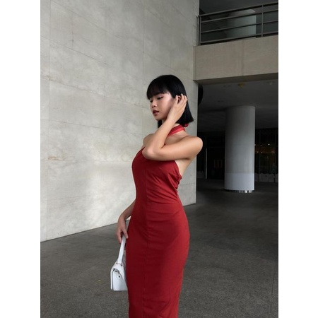 Giới thiệu [HÀNG THIẾT KẾ CAO CẤP] Đầm Body Cổ Yếm Hở Lưng SIêu Tôn Dáng Đi Tiệc Sang Trọng Màu Cam