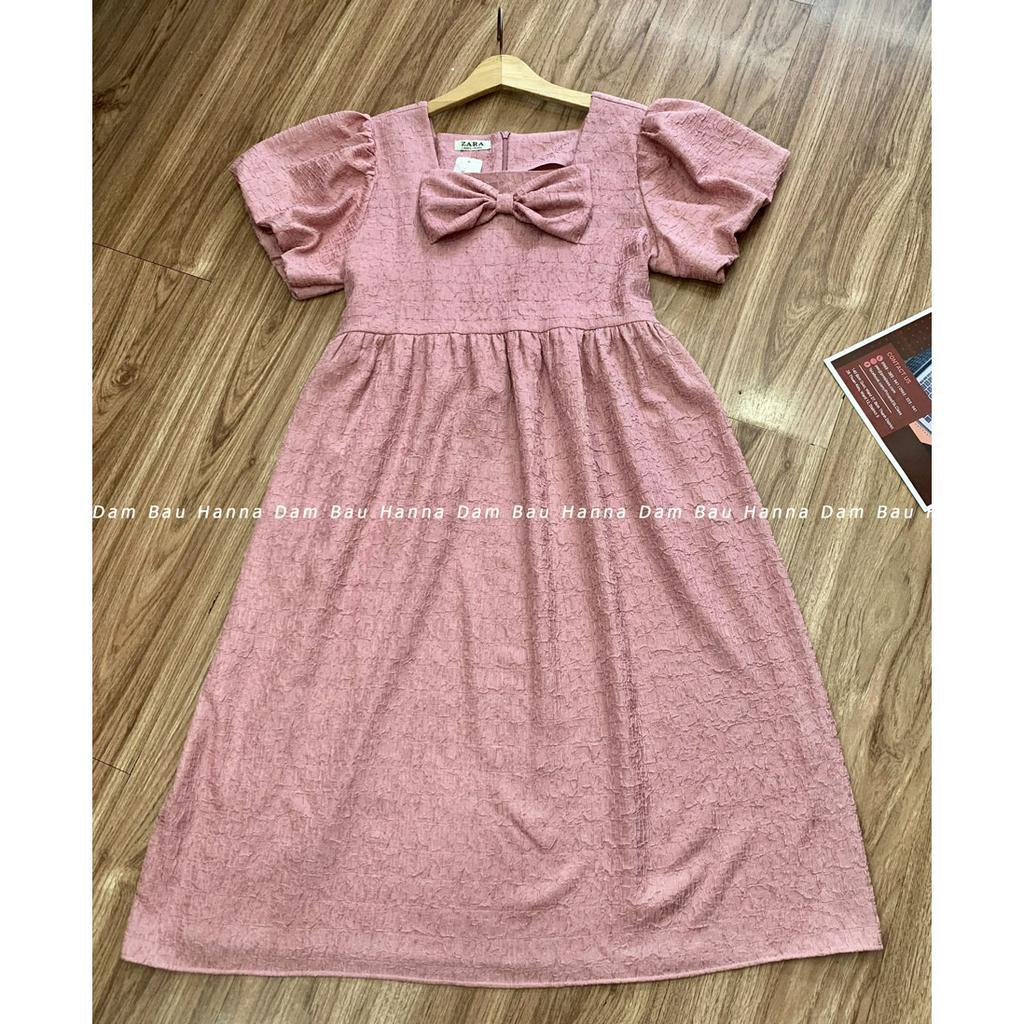 Giới thiệu [HANNA- 55-75KG] Đầm bầu xinh dự tiệc baby doll đầm dài vải mềm mát dễ thương có khóa sau lưng free size 55-75kg