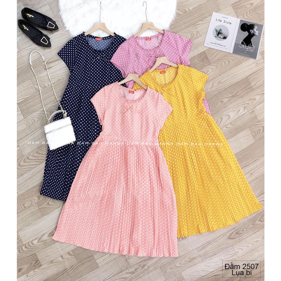 Giới thiệu [HANNA SIZE 40-70KG] Đầm bầu dập ly dễ thương sang chảnh dáng dài qua gối mặc đi tiệc đi làm đều đẹp vải cao cấp mát