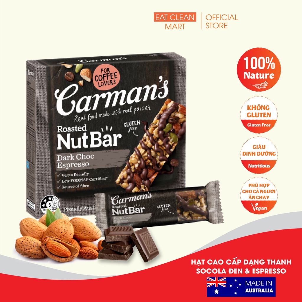 Giới thiệu Thanh Hạt Ăn Kiêng Carman's Nut Bar Dark Choc Espresso - Socola đen Espresso - Hộp 160g