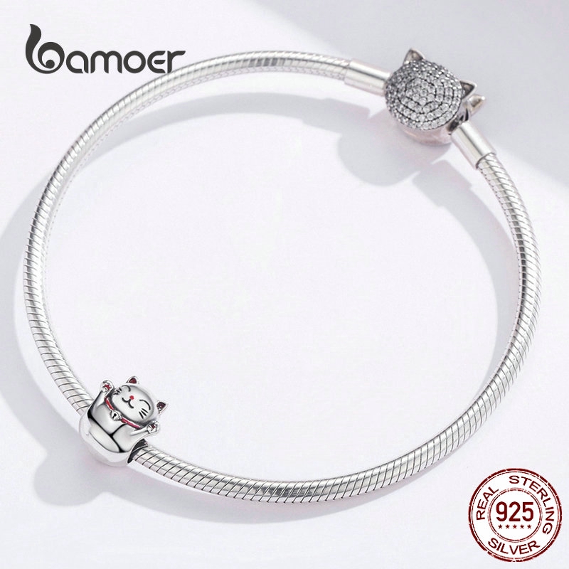 Giới thiệu Hạt charm Bamoer bằng bạc 925 hình mèo may mắn trang trí vòng tay