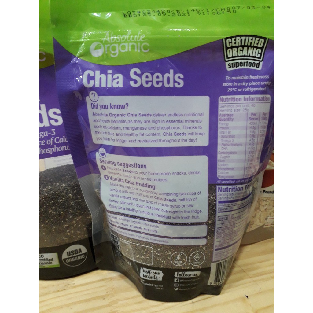 Sản phẩm Hạt chia Úc tím Absolute Organic Chia Seeds - Túi 1Kg đang có giá bán là 53,200đ. Hiện tại, đang có hàng sẵn tại shop của chúng tôi trên sàn TMĐT Shopee. Quý khách có thể ĐẾN NƠI BÁN để vào shop chúng tôi đặt mua online, trả góp, ship hỏa tốc, thanh toán thẻ visa/master, thông tin xuất hóa đơn đỏ (VAT) hay cần có thêm nhiều thông tin về sản phẩm.