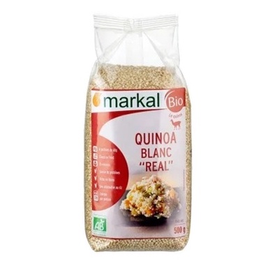 Hạt diêm mạch trắng (hạt quinoa trắng) hữu cơ Markal 500g nhâp khẩu Pháp ✔ Chứng nhận hữu cơ AB (Agriculture Biologique) và EU ✔ Thành phần: 100% hatj diêm mạch ( hạt quinoa ) trắng hữu cơ ✔ Đặc điểm : - Tính kiềm nhẹ, phù hợp với những người đang theo quá trình điều trị ung thư để ức chế quá trình phát triển các tế bào ung thư. - Không chứa gluten, phù hợp với những người bị dị ứng hoặc không dung nạp gluten. - Nguồn cung cấp các chất dinh dưỡng cần thiết cho cơ thể : protein, chất xơ, vitamin và chất khoáng. Đặc biệt qui noa là một trong các loại hạt ngũ cốc hiếm chứa 9 axit amin cần thiết cho cơ thể. - Chứa 2 chất flavonoids (Quercetine và Kaempférol), nổi tiếng với đặc tính chống oxi hóa. - Chứa đường đa với chỉ số glycemic tương đối thấp (53), hỗ trợ kiểm soát lượng đường trong máu.