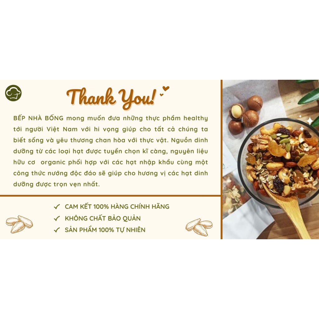 BẾP NHÀ BỐNG - HẠT DINH DƯỠNG:(Hạt dinh dưỡng Granola mix 7 loại) - Hoàn toàn không sử dụng chất bảo quản, không chứa phẩm màu. - Khách hàng được kiểm hàng thoải mái khi nhận hàng. - Giao hàng toàn quốc, giao hàng khi nhận được đơn hàng