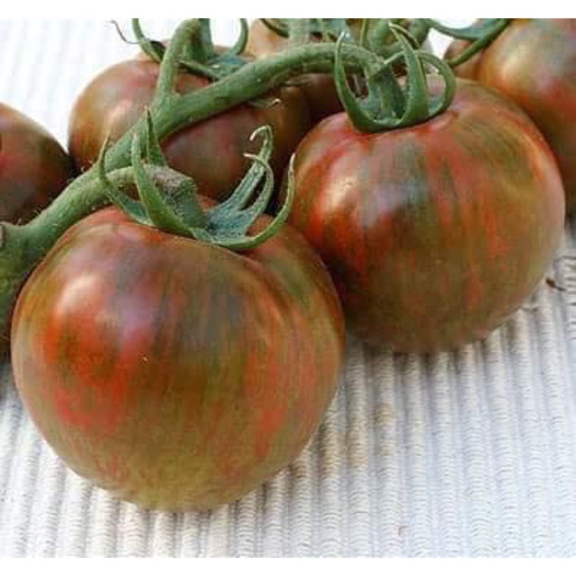 CÀ CHUA ZERA SOCOLA ZeZAa Tomato là loại cà chua cherry đặc biệt, có vằn sọc nằm dọc theo quả. Thuộc dạng cây bán bụi, chiều cao tối đa 2m, quả mọc theo chùm 5-7 trái/ chùm Trái khi chín có màu vàng, có vằn sọc dọc trái, cùi dày, ít hạt, nhiều cùi. CŨng giống như các loại cà chua cherry hoa quả khác, Zera vàng cũng có vị ngọt, thơm, chủ yếu dùng để ăn sống, làm salad như những loại cà chua khác Cà chua Zera chứa hàm lượng vitamin A trong cà chua rất cao, trung bình 100g cà chua chín tươi sẽ đáp ứng được 13% nhu cầu hàng ngày về vitamin A, B6, C. Ngoài ra loại cà chua này còn rất giàu các chất vi lượng như canxi, sắt, kali, phốt pho, magiê, niken, côbal, các acid hữu cơ dưới dạng muối citrate, malat. =>Chính nhờ các yếu tố này mà cà chua sọc zebra được xem là nữ hoàng của các loại cà chua cherry Điều kiện sinh trưởng: Giống cà nhiệt đới, ưa ánh nắng và độ ẩm cao Giống kháng bệnh dễ trồng dễ chăm, thời gian trưởng thành ngoài 80 ngày, cây bền tuổi thọ cây lên đến 2 năm