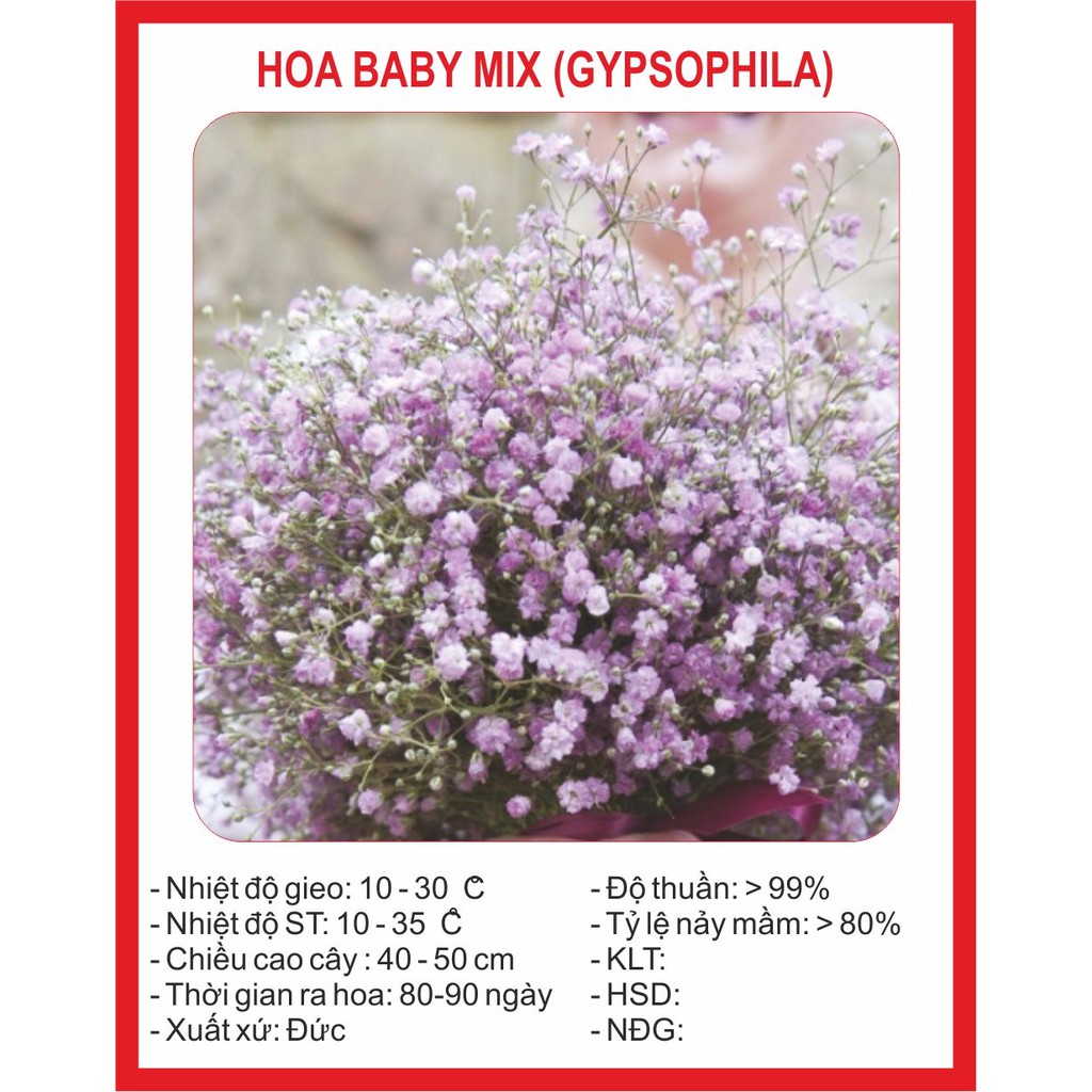 Hãy bấm THEO DÕI shop để cập nhật những sản phẩm yêu thích với giá hấp dẫn ạ! - SHOP Hạt giống - Mua sắm thả ga, giá cả tốt nhất ! - Giao hàng TOÀN QUỐC - Thanh toán khi nhận hàng COD - Tư vấn hỗ trợ: 0944.160.811 (Long) - 0981354614 ( Huyền ) - Địa chỉ: Khu tập thể đài phát tín, số 4 ngách 163/2, ngõ 163 Đại Mỗ, Nam Từ Liêm, Hà Nội ---------------------------------------------- * GIỚI THIỆU SẢN PHẨM - Số hạt/gói: 100 hạt - Tỷ lệ nẩy mầm: >80% - Mùa Vụ: Quanh năm - Nhiệt độ gieo: 10 - 30 độ - Nhiệt độ ST: 10 - 35 độ - Thời gian ra hoa: 80 - 90 ngày ---------------------------------------------- * HƯỚNG DẪN TRỒNG ĐƠN GIẢN 1. Chuẩn bị vật dụng - chất trồng: -Chậu nhỏ (hoặc chậu to nếu sau này không muốn thay chậu nữa) hoặc khay ươm nếu gieo số lượng nhiều. Dù bạn dự tính trồng thẳng trong chậu hoặc sẽ chuyển xuống đất trồng thì cũng nên uơm hạt trong chậu trước vì dễ quản lí đô ẩm, sâu bệnh, dinh dưỡng... -Thuốc trừ nấm. -Đất sạch giàu dinh dưỡng + vỏ trấu hoặc xơ dừa, mụn xơ dừa, (đã hoai mục), phân gà, phân bò... Thông thường tỷ lệ phổ biến như sau: Đất sạch - vỏ trấu, xơ dừa, phân gà, bò = 7 : 3 - Hoặc có thể dùng đất sạch đóng bao sẵn – mua ở cửa hàng 2. Tiến hành gieo hạt:. -Chất trồng sau khi trộn đều, chúng ta cho vào chậu hoặc khay uơm. -Phun thuốc trừ nấm lên mặt chất trồng (bước này khá quan trọng), tốt nhất phun liên tục 2-3 lần để thuốc thấm xuống sâu hơn. (nếu mua đất sạch thì không cần) -Ngâm hạt: Ngâm hạt trong nước 3 sôi 7 lạnh trong 5-7h -Sau khi ngâm hạt dùng giấy ướt (có thể dùng giấy vệ sinh gấp lại thành nhiều lớp) để ủ hạt (cho hạt vào giấy, và gấp đôi chúng lại), sau đó cho vào 1 hộp nhỏ, rồi đậy kín lại và cho vào chỗ mát mẻ (luôn để giấy ở trạng thái ẩm cao). Để như vậy đến khi hạt nhú mầm xanh(tùy hạt mà từ 5-15 ngày) thì mang gieo ra đất đá được làm tơi xốp – nhớ làm nhẹ tay kẻo gẫy mầm nhé! (thường áp dụng cho các loại hạt yêu cầu kĩ thuật xíu: hạt giống hoa các loại, dâu tây, nho, dưa pepino, hồng ri ba tư, nho gỗ, tử đằng...) 3. Chăm sóc sau khi gieo hạt: -Nhiệt độ: tùy loại mà hạt cần nhiệt độ khác nhau để nẩy mầm, tuy nhiên dao động từ khoảng 20-25oC thích hợp cho đại đa số hạt. Không cần quá chú trọng đến vấn đề này vì chỉ cần che lưới là ổn rồi. -Độ ẩm của đất trồng: chú ý luôn đảm bảo độ ẩm cho đất, không được để đất bị khô hoặc quá ẩm -Đặt chậu hoặc khay uơm ở nơi có ánh sáng khuyếch tán (che lưới lan màu đen loại 50%), vì hạt cần ánh sáng để nẩy mầm, nhưng nếu cường độ quá mạnh sẽ đốt cháy hạt và làm khô chất trồng nhanh chóng. Cũng có 1 số ít (rất ít) loại cần gieo hạt trong bóng tối. -Thay chậu hoặc chuyển vào đất trồng: khi cây con đã lớn đến mức độ nào đó (thân đủ cứng cáp, rễ mạnh...), chúng ta có thể chuyển qua chậu to hơn hoặc chuyển xuống đất trồng trực tiếp. Nếu trước đó đã gieo hạt trong chậu to thì có thể trồng tiếp mà không cần sang chậu. Chú ý bón lót phân hữu cơ vào đất trồng. -Bón phân: đối với cây con, hệ rễ vẫn chưa đủ mạnh để hấp thụ phân có nồng độ cao, cho nên việc dùng phân
