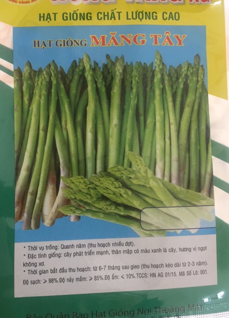 Hạt Giống Măng Tây Xanh đang được người tiêu dùng ưa chuộng. Đây là thứ “rau hoàng đế ” thơm thảo có chứa nhiều chất dinh dưỡng cần thiết cho cơ thể, được xem như một loại thuốc tăng khả năng sinh lý tự nhiên quý giá. Măng tây xanh là loại hạt giống rau củ quả được phát hiện ở Châu Âu cách đây vài trăm năm. Đây là một loại thực vật dạng thân bụi, lá nhỏ hình kim, cây được trồng chủ yếu để lấy măng non và có thể thu hoạch măng trong thời gian dài, khoảng 15-20 năm. Đây là thực phẩm có giá trị kinh tế rất cao nên đang được mở rộng và phổ biến ở rất nhiều tỉnh khác nhau.