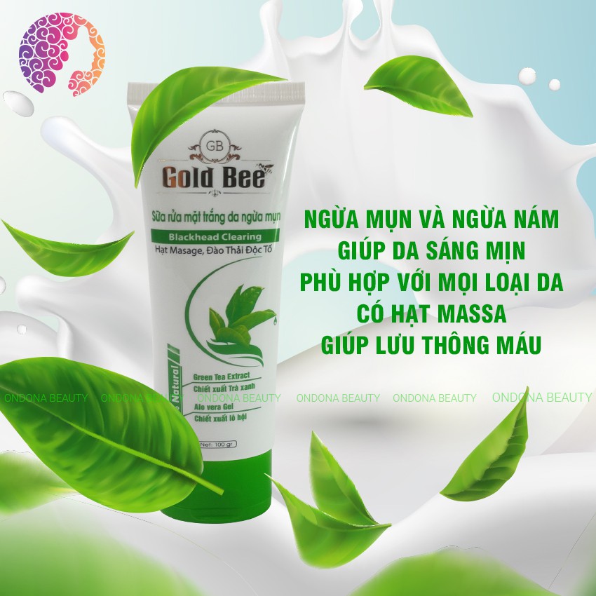 Giới thiệu [Có Hạt Massage] SỮA RỬA MẶT TRẮNG DA NGỪA MỤN (Trà Xanh + Lô Hội) Gold Bee - Ondona Beauty