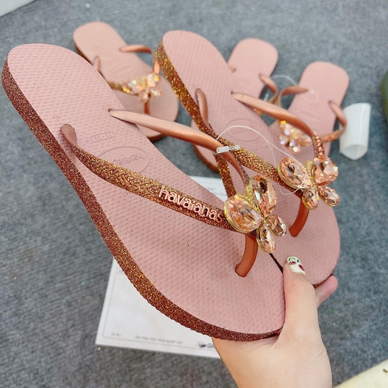 Giới thiệu Havaianas Dép Tông Nữ Kim Tuyến Viền Chính Hãng Charm B Đá _ Hà Nhi Havaianas