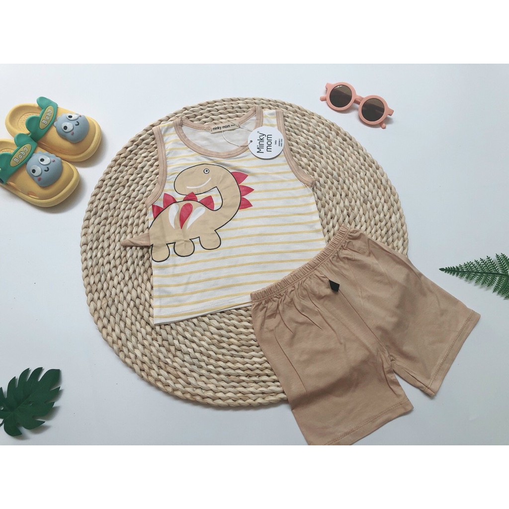 Giới thiệu [HCM] Bộ Quần áo trẻ em, mẫu ba lỗ sọc khủng long, vải cotton thun lạnh chính phẩm Minky Mom