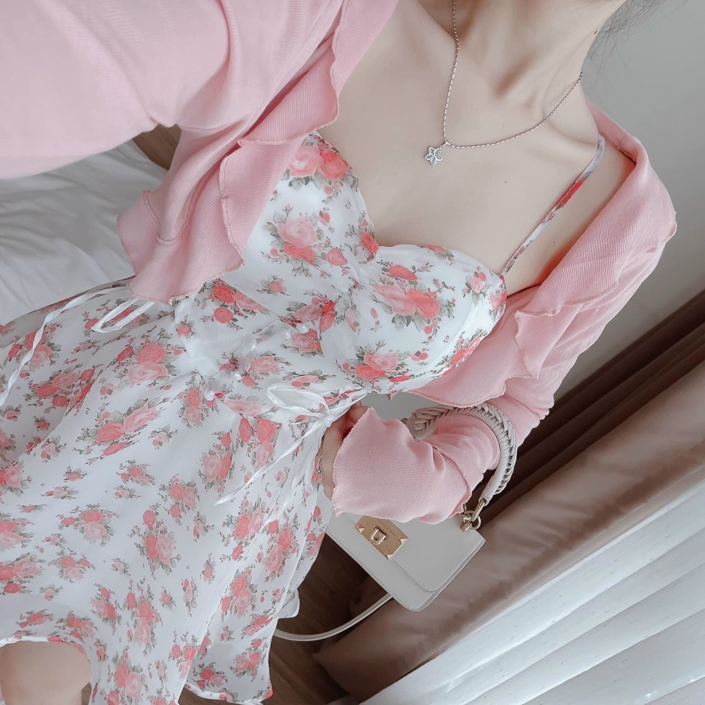 Giới thiệu [HCM] Đầm Dự Tiệc Phối Áo Khoác Cotton Họa Tiết Voan Hoa Thời Trang Nữ Sam Closet Free Size 40-55kg
