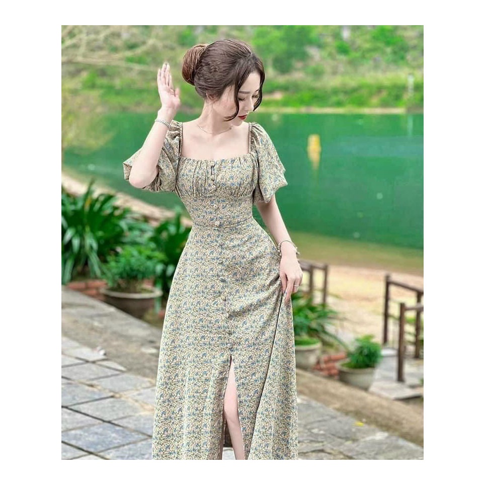 Giới thiệu [HCM] Đầm Nữ Tay Phồng Nút Bọc Họa Tiết ( Có Mút Ngực) Thời Trang Nữ Sam Closet Free Size 40-55kg