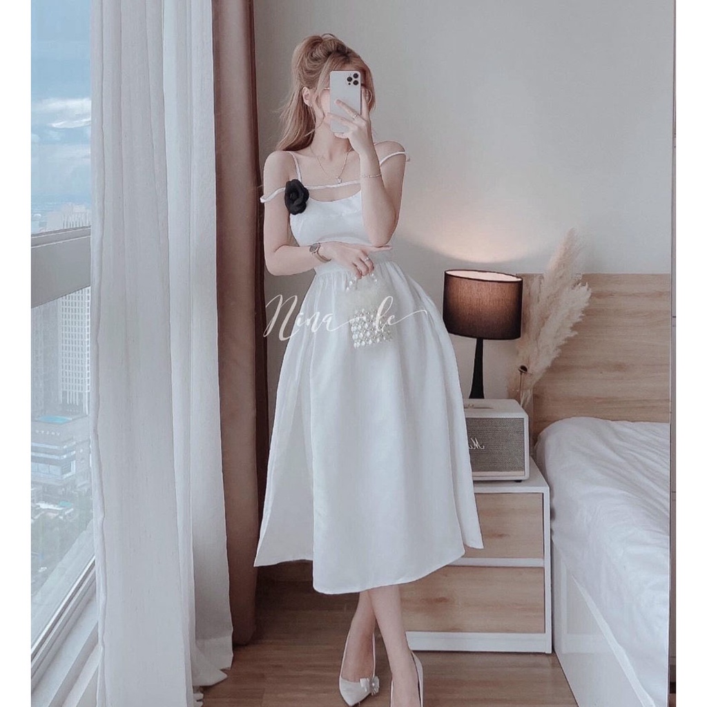Giới thiệu [HCM] Đầm Xòe 2 Dây Cài Bông ( Có Mút Ngực ) Cao Cấp Thời Trang Nữ Sam Closet Free Size 40-55kg