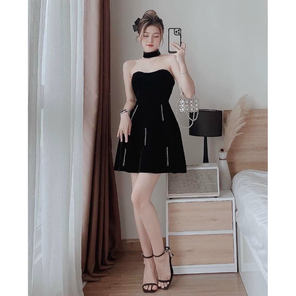 Giới thiệu [HCM] Đầm Xòe Nhung Cúp Ngực Đính Cườm Phối Dây Cổ Thời Trang Nữ Sam Closet Free Size 40-55kg
