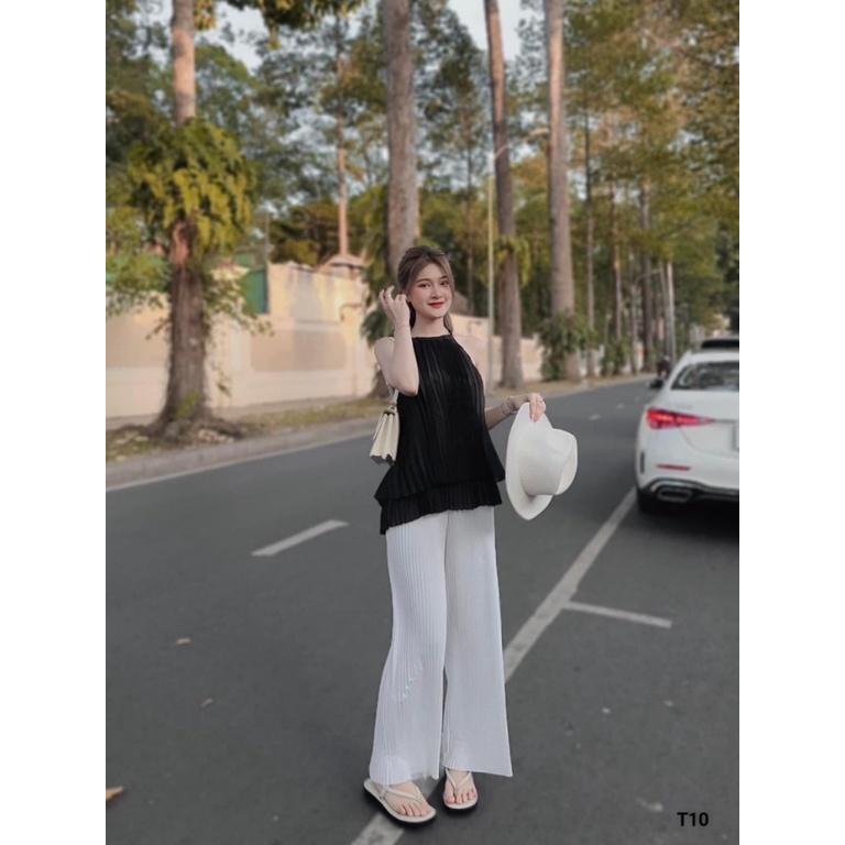 Giới thiệu (HCM) Set lụa dập ly cổ yếm sieu xinh Quần Dài - Áo Tay Ngấn Thời Trang Tôn Dáng , Sang chảnh cho các cô nương JANGMY SH