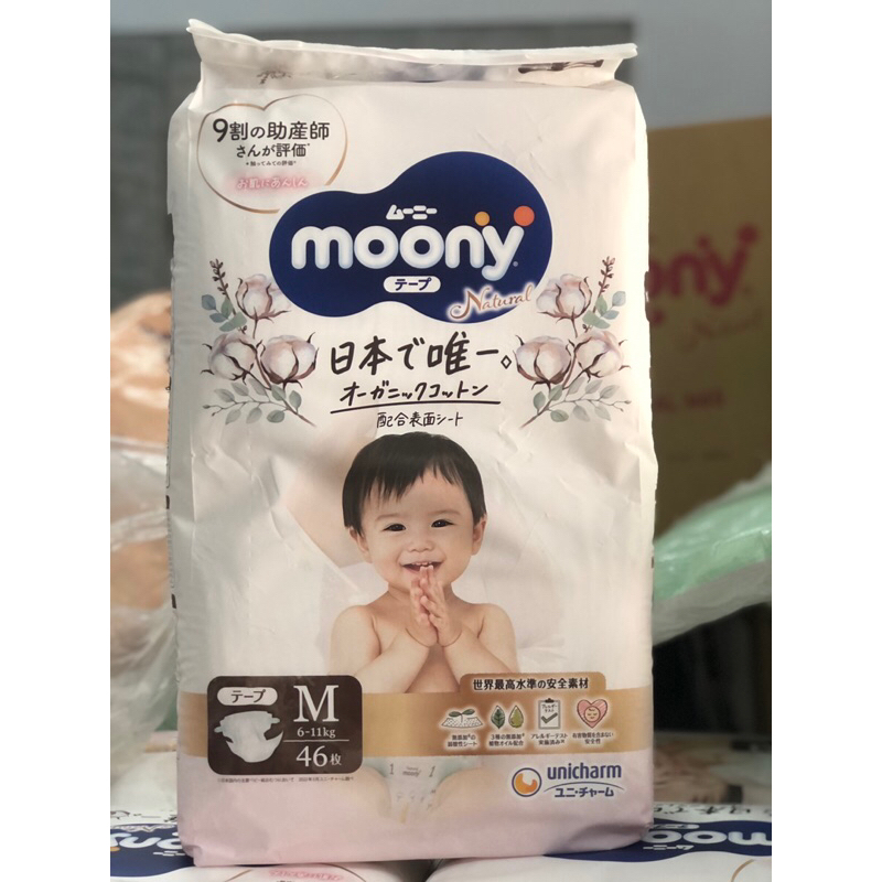 Dòng tã Moony Natural là phiên bản cao cấp hơn, còn mềm và mỏng hơn nhiều nữa, nắm bắt xu thế ưu tiên chọn sản phẩm hữu cơ của thị trường, đây sẽ là lựa chọn mang đến sự an tâm tuyệt đối cho mẹ.
