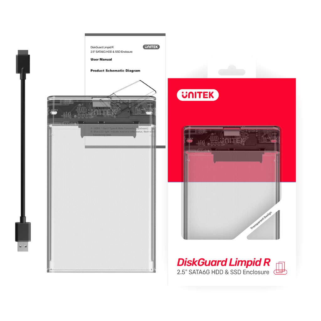 Nội dung gói: 1 x DisGuard Limpid R 1 x Cáp dữ liệu USB-A đến Micro USB-B (30cm) 1 x Hướng dẫn sử dụng #boxocung #hopdungocung #hddbox #ssdbox #hopdungocunggantrong2_5" #boxdungocunghdd #boxdungocungssd #boxocunghdd2_5 #boxocung3_0 #hddboxssdbox3.0 #boxunitek #unitek #S1103A