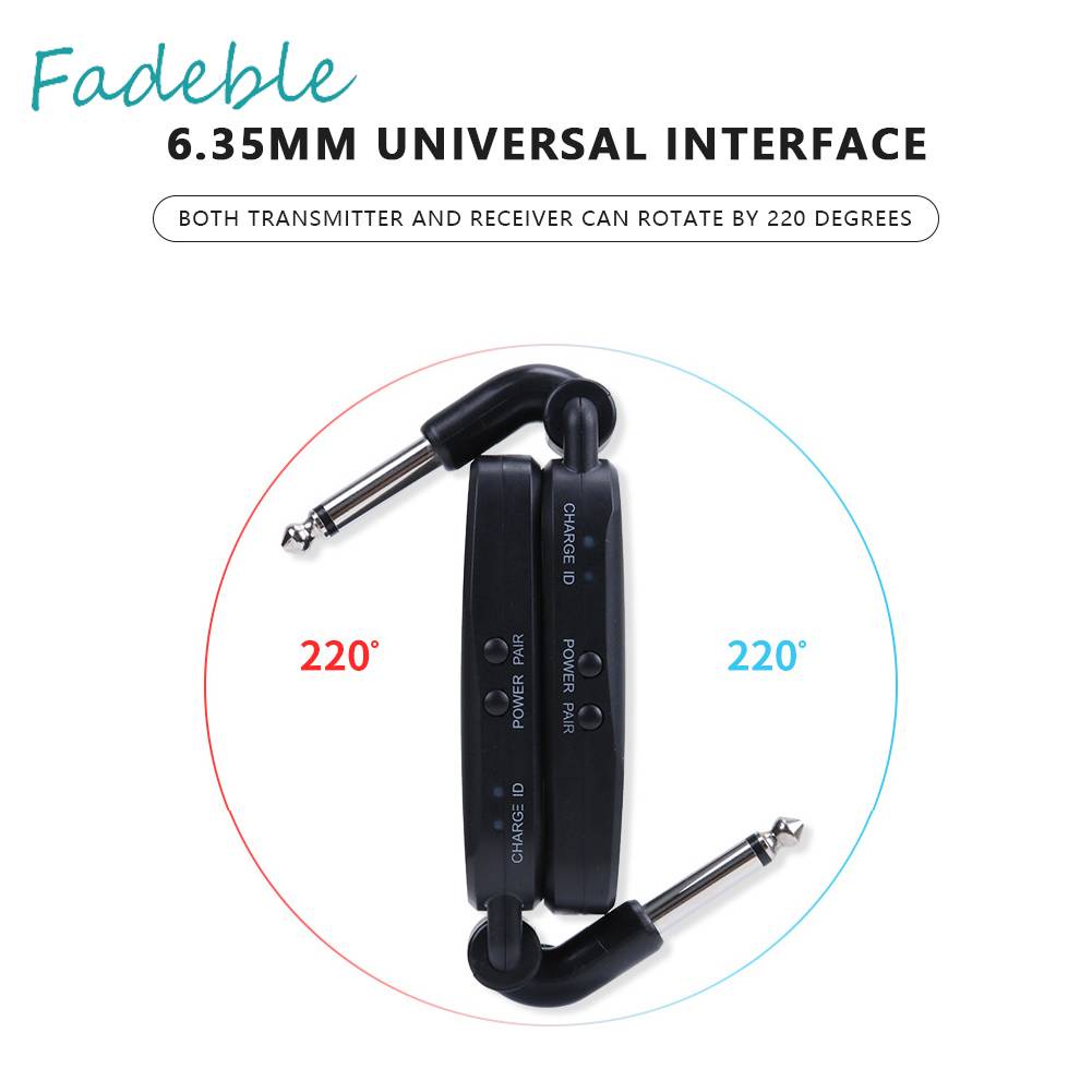 Bộ thu phát Guitar Bass Bộ thu phát Guitar không dây chuyên nghiệp Bộ thu phụ kiện nhạc cụ cắm và chạy Tính năng ' 1. Truyền tín hiệu không nén - Hệ thống ghi-ta không dây tần số cực cao này hỗ trợ truyền tín hiệu không nén với phạm vi ngoài trời trên 50 mét , đảm bảo hiệu suất rõ ràng và không bị nhiễu . 2. Tiện lợi plug-and-Play - Bộ thu phát âm trầm của guitar rất dễ sử dụng , chỉ cần cắm vào và bắt đầu chơi mà không cần dây cáp lộn xộn , cho phép bạn tập trung vào hiệu suất hoặc luyện tập của mình . 220° Thiết kế phích cắm xoay giúp nó tương thích với các thiết bị có giắc cắm đầu vào ở các vị trí khác nhau . Thiết kế nhỏ gọn và nhẹ giúp bạn dễ dàng mang theo . 3. Truyền âm thanh tần số cực cao - Với tính năng chống nhiễu và độ trễ siêu ngắn , hệ thống không dây guitar điện này mang lại chất lượng âm thanh hoàn hảo , đảm bảo truyền tín hiệu ổn định và rõ ràng . 4. Tương thích với nhiều loại nhạc cụ khác nhau - Hệ thống phát và thu không dây này phù hợp với guitar điện , guitar acoustic-điện , bass và các nhạc cụ khác . 5. Bền và đáng tin cậy - Được làm bằng vật liệu chất lượng cao , hệ thống không dây này bền và đáng tin cậy , mang lại hiệu suất lâu dài và lý tưởng cho các nhạc sĩ chuyên nghiệp . Kích thước sản phẩm ' 144 * 37 * 13mm '5,67 x 1,46 x 0,51in Vật liệu chính - ABS Phạm vi truyền “ 50 mét ( không có chướng ngại vật)