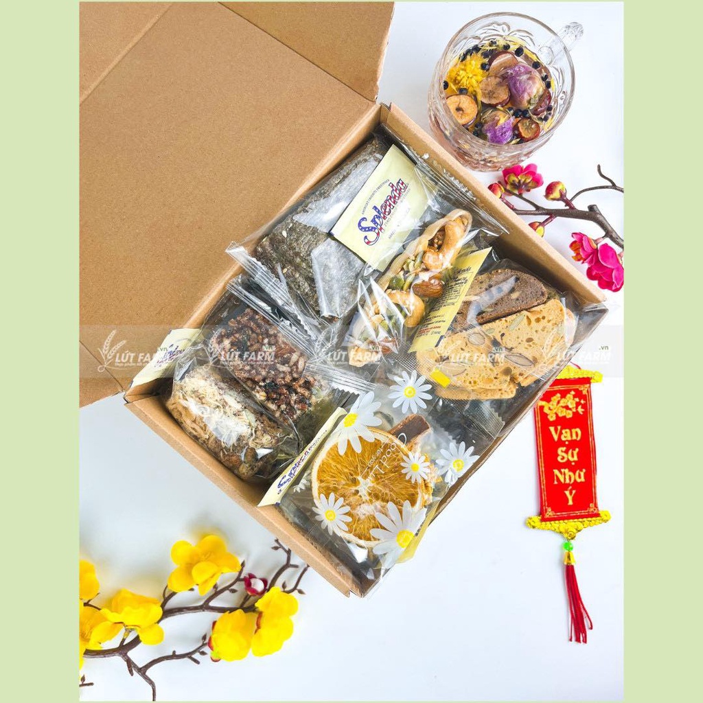 🔻Cả nhà đang tìm kiếm 1 combo sản phẩm ngon bổ - đẹp mắt - tốt cho sức khoẻ - phù hợp mọi lứa tuổi với nhiều công dụng: - Bữa phụ đa dạng đủ chất cho tín đồ ăn uống lành mạnh - Vật bất ly thân, tiện lợi trong quá trình lấy lại vóc dáng đón Tết - Quà Tết tặng gia đình, bạn bè - Bày mâm ngũ quả ngày Tết - Bổ sung vào khay bánh kẹo Tết đãi khách 💯 Lứt Farm hiểu được mong muốn đó nên đã ấp ủ từ rất lâu để có thể mang tới sản phẩm Healthy Box - Trà bánh healthy với tất cả cái tâm làm nghề của một tập thể #Lứt_Farm: Gắn với sức mệnh duy nhất "Sức khỏe của mọi gia đình Việt" 💁♀️Đặt ngay Healthy Box, bạn sẽ có ngay cơ hội mua 1 được 8 với những món trà bánh được yêu thích nhất - tiện lợi - ngon - lành mạnh: - Thanh ngũ cốc gạo lứt rong biển - Thanh ngũ cốc gạo lứt chà bông - Bánh rong biển kẹp hạt dinh dưỡng - Bánh thuyền hạt dinh dưỡng siêu hạt - Bánh quy Biscotti 3 vị vani/socola/matcha - 11 vị trà hoa thảo mộc tốt cho sức khỏe từ thiên nhiên - 5 đường ăn kiêng Splenda - Miễn ship toàn Quốc 📝 Đặc điểm Healthy Box - Trà Bánh Lứt Farm với chuẩn tiêu chí 4 KHÔNG: - KHÔNG ĐƯỜNG KÍNH - KHÔNG QUA CHIÊN RÁN - KHÔNG CHẤT BẢO QUẢN - KHÔNG BỘT MÌ TRẮNG 📖Hướng dẫn sử dụng: - Bánh: sử dụng trực tiếp sau khi bóc vỏ - Trà: 1 gói trà pha cùng 250ml nước nóng, đợi 5-7 phút cho hoa nở, chế thêm 1-2 lần nước nữa uống cho đến khi nhạt trà (có thể pha cùng đường Splenda theo khẩu vị) - Bảo quản nơi khô ráo, thoáng mát, tránh ánh nắng trực tiếp 🛒 Thông tin sản phẩm: - Hạn sử dụng: 06 tháng kể từ ngày sản xuất (ngày sản xuất xem trên bao bì) - Khối lượng: 500 gam (khối lượng tính riêng sản phẩm - không tính hộp) ---------------- Lứt Farm - Thực Phẩm Tốt Cho Sức Khỏe