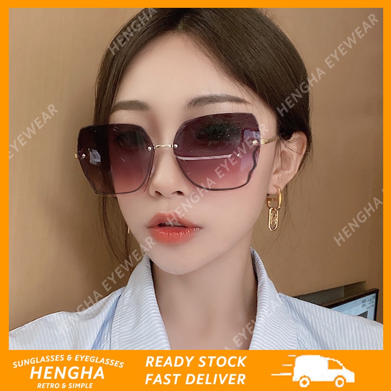 Giới thiệu (HENGHA) Kính Mát Thời Trang Hàn Quốc Không Gọng Cắt Hình Bướm Màu Gradient Phương Tây