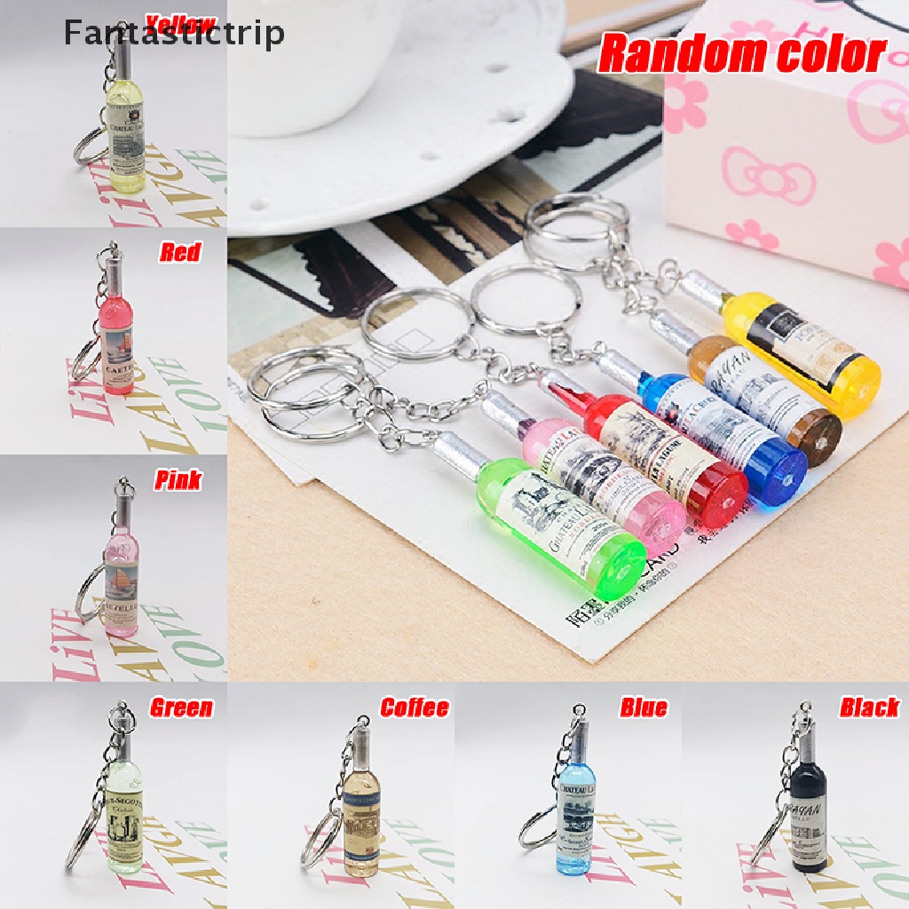Specification: Material: Metal + Acrylic Style:13Styles Size: 4.8x1.2cm/1.9x0.5in Weight: 7G Package included: 1 x Wine Bottle Keychain