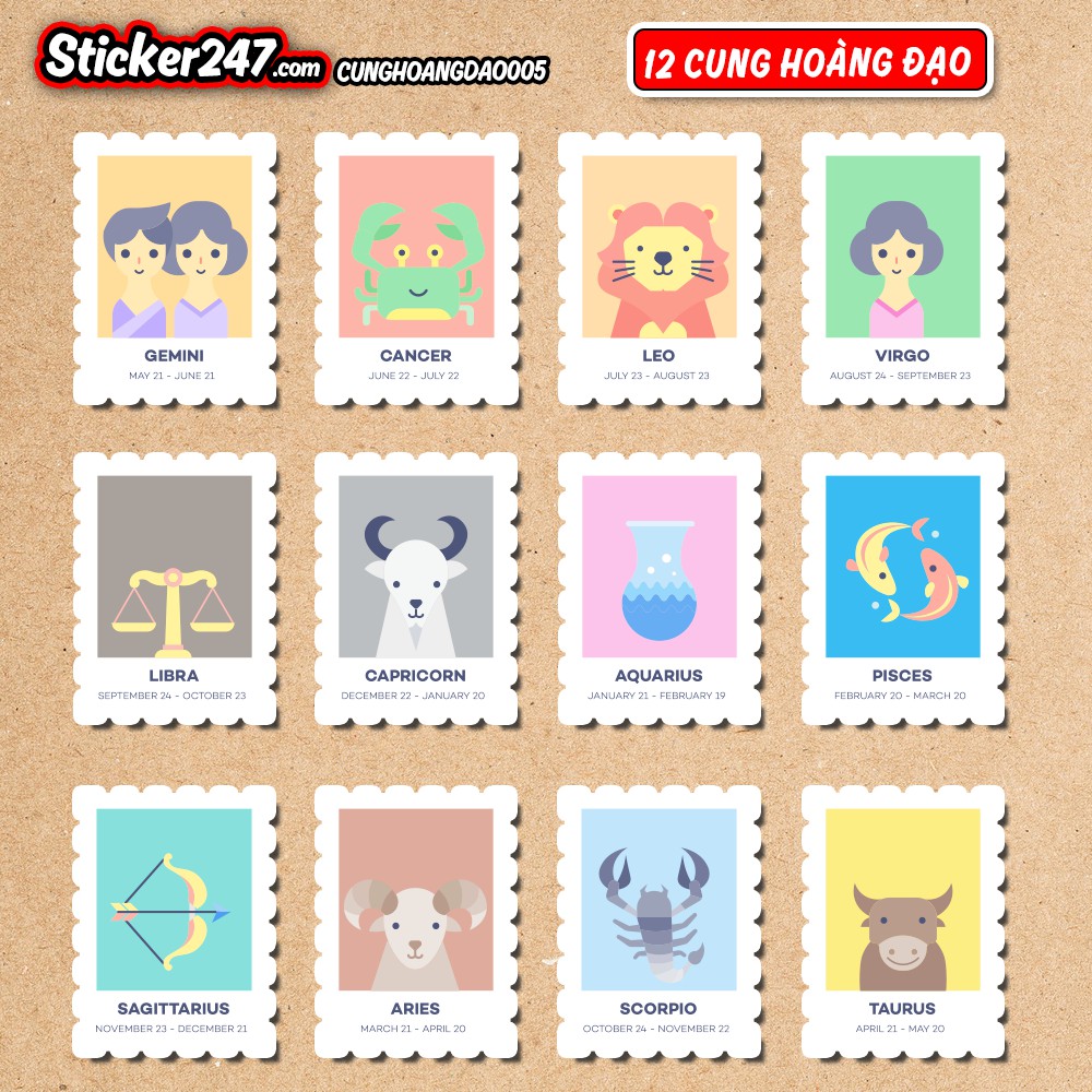 Giới thiệu 𝑭𝒓𝒆𝒆𝒔𝒉𝒊𝒑 [𝐒𝐞𝐭 𝟭𝟮 𝐒𝐭𝐢𝐜𝐤𝐞𝐫] Hình dán chống nước 12 cung hoàng đạo - CUNGHOANGDAO005 - Sticker 247