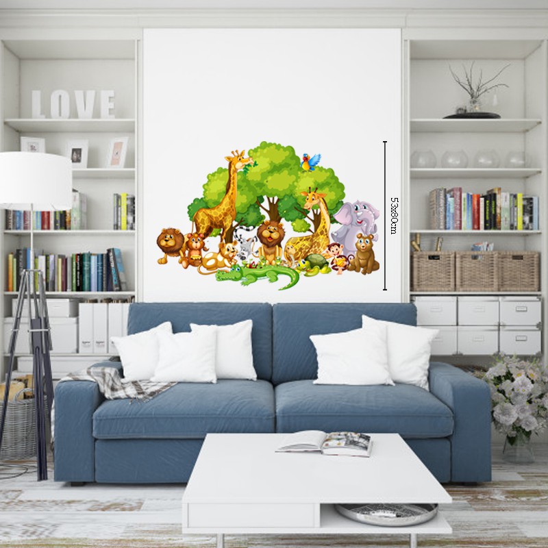 Hình Dán Tường Trang Trí Phòng Ngủ Cho Bé | Set Decal Dán Tường Hình Động Vật Rừng Xanh