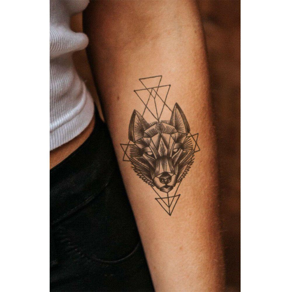 Gói bao gồm ' Hình xăm dán 1pc Hình xăm tạm thời Nhãn dán cơ thể Nghệ thuật cánh tay Chân Hình xăm không thấm nước Lâu dài 9x6cm Hình học Sói Thiết kế thời trang Màu đen Bán chạy