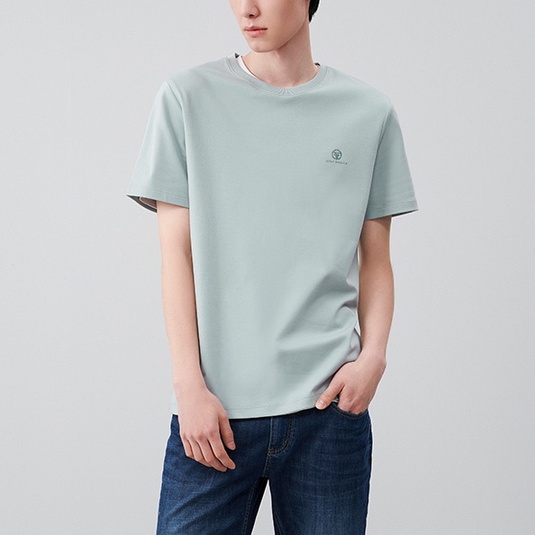 Giới thiệu HLA - Áo thun nam ngắn tay cotton mềm thoáng khí Classic round-neck cotton light blue T-shirt