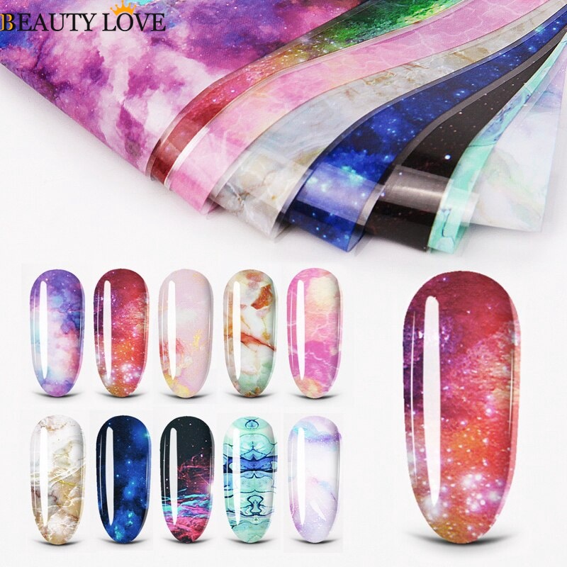 Giới thiệu Hnuix Nhãn Dán Trang Trí Móng Nghệ Thuật Chuyển Họa Tiết Bầu Trời Sao Cầu Vồng 10 Màu