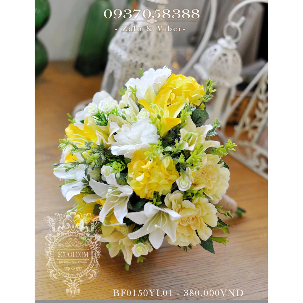 Hoa cầm tay cô dâu BF0150YL01Hoa cầm tay cô dâu BF0150YL01Hoa cầm tay cô dâu BF0150YL01 Giá CREPE