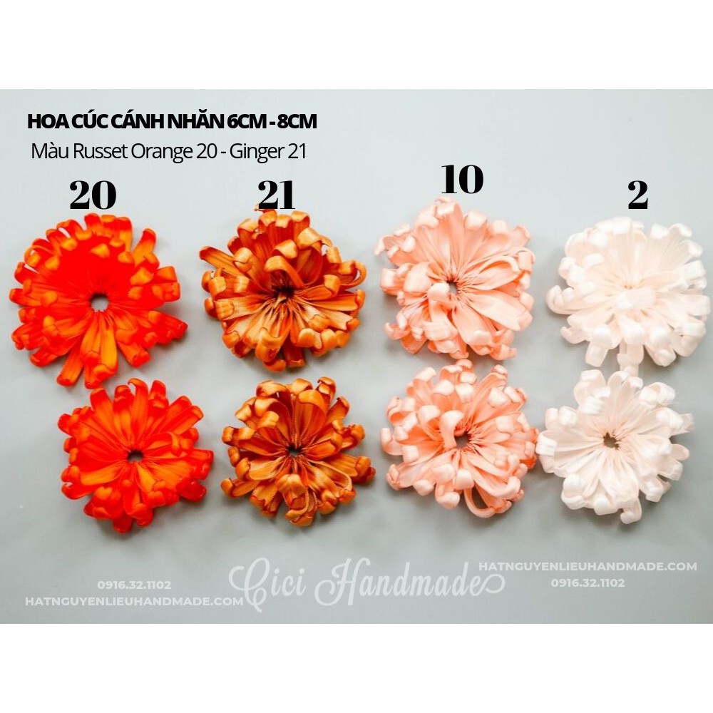 Hoa cúc nguyên liệu handmade : - Kích thước: 6cm - 8cm - Có nhiều màu khác nhau ==> Với hoa cúc nguyên liệu bạn có thể làm thành cài áo, chun buộc tóc, bờm tóc hoặc băng đô cực xinh <3 ----------------------------------- Mua hàng tại: Cici Handmade (Hà Nội) www.hatnguyenlieuhandmade.com shopee/cici_s_handmade fb/hatnguyenlieuhandmade 0916321102 Chuyên: ✔Nguyên liệu handmade, các loại hạt đính kết, hath đá, cườm, kim sa ✔Dụng cụ làm đồ handmade