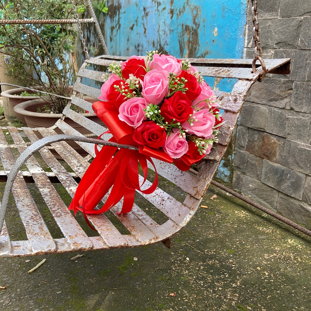 Nhà Cửa & Đời Sống > Trang trí nhà cửa > Hoa và lọ > Hoa Cưới cầm tay Cô Dâu Hoa Hồng Đỏ + Hồng Sáp Thơm Bouquet Of Flowers Wedding (Tặng hoa áo chú rể)