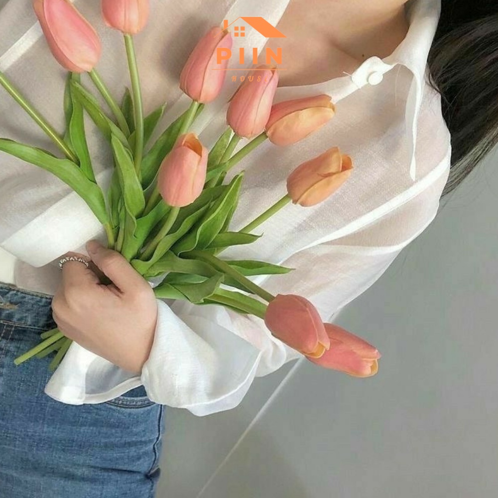 Giới thiệu Hoa giả tulip cao cấp Decor trang trí lọ để bàn bằng PU lá cây thẳng dài 34cm đẹp nhiều màu - PIIN HOUSE