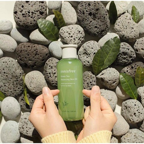 Nước Hoa Hồng Innisfree Green Tea Balancing Skin Ex chứa chiết xuất từ lá trà xanh tươi nguyên chất trồng trên đảo Jeju chứa nhiều acid amin có tác dụng cân bằng độ pH trên da, se khít lỗ chân lông, loại bỏ những bã nhờn và bụi bẩn có bên trong da. Sản phẩm có kết cấu lỏng nhưng đặc hơn một chút so với nước, dễ dàng hấp thụ nhanh qua da, sản phẩm cũng không chứa cồn nên những bạn dù bị mụn khi sử dụng cũng không gây rát da.