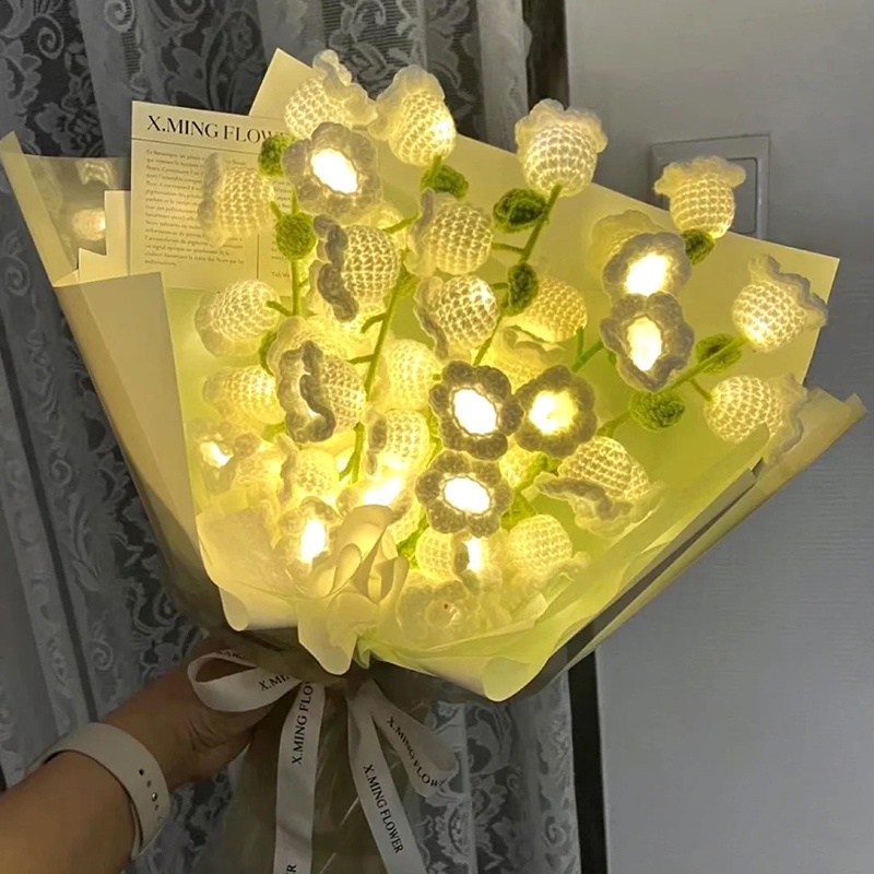 Features: ✿ Milk cotton+Iron materials - High-quality Milk cotton flower petals and leaves & Iron Wire flower pole. ✿ Hand-woven - Purely hand-woven bell orchid flowers, exquisite workmanship. ✿ With light: LED light design makes the lily of the valley more beautiful and easy to use. ✿ Timeless - Woven handicrafts are not easy to fade, and remain beautiful, safe, and tasteless. ✿ Application - Suitable for decorating bedrooms, living rooms, desks, etc., and also a creative gift for friends. Note: Due to the different colors displayed by different computers, the color of the actual product may be slightly different from the above pictures, please understand. Color: White Material: Milk cotton+Iron Button battery model: AG10*3 pcs (included) Number: KE0020 Size: Overall length: 40 cm/15.7 in Please allow a 1-3 cm manual measurement error. Package includes: Finished hand woven flower*1pc